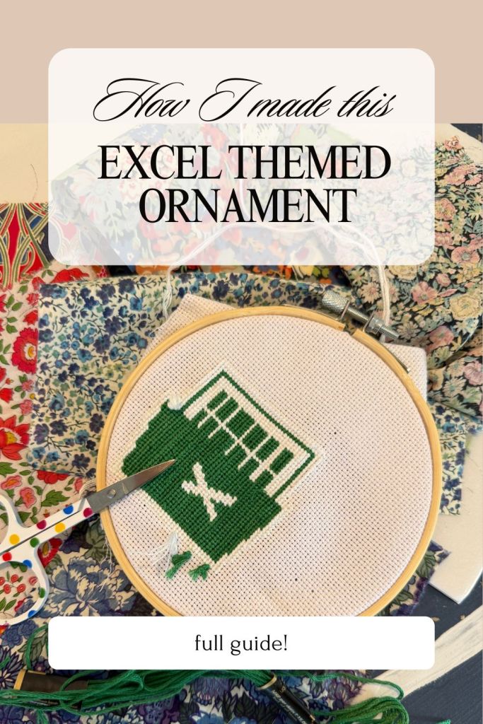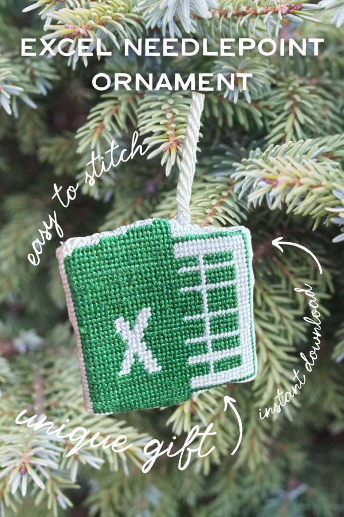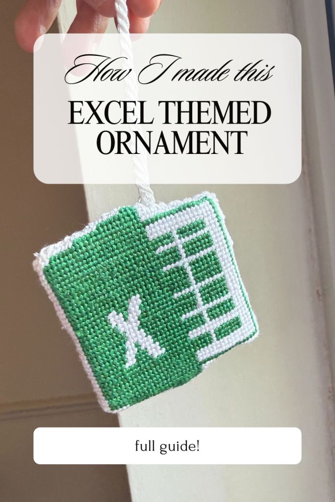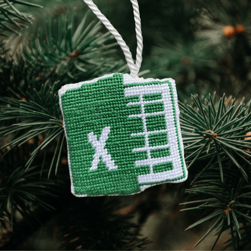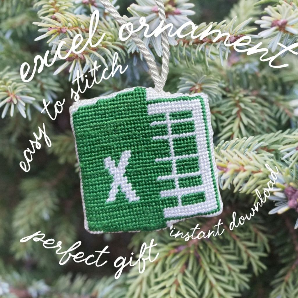 So… I made an Excel ornament. Yep, you read that right. Forget snowflakes and Santas — I stitched up the Microsoft Excel logo to hang on my Christmas tree. Because why not? Needlepoint people are always on the hunt for unique, funny projects, and honestly, this one was too good not to try.
