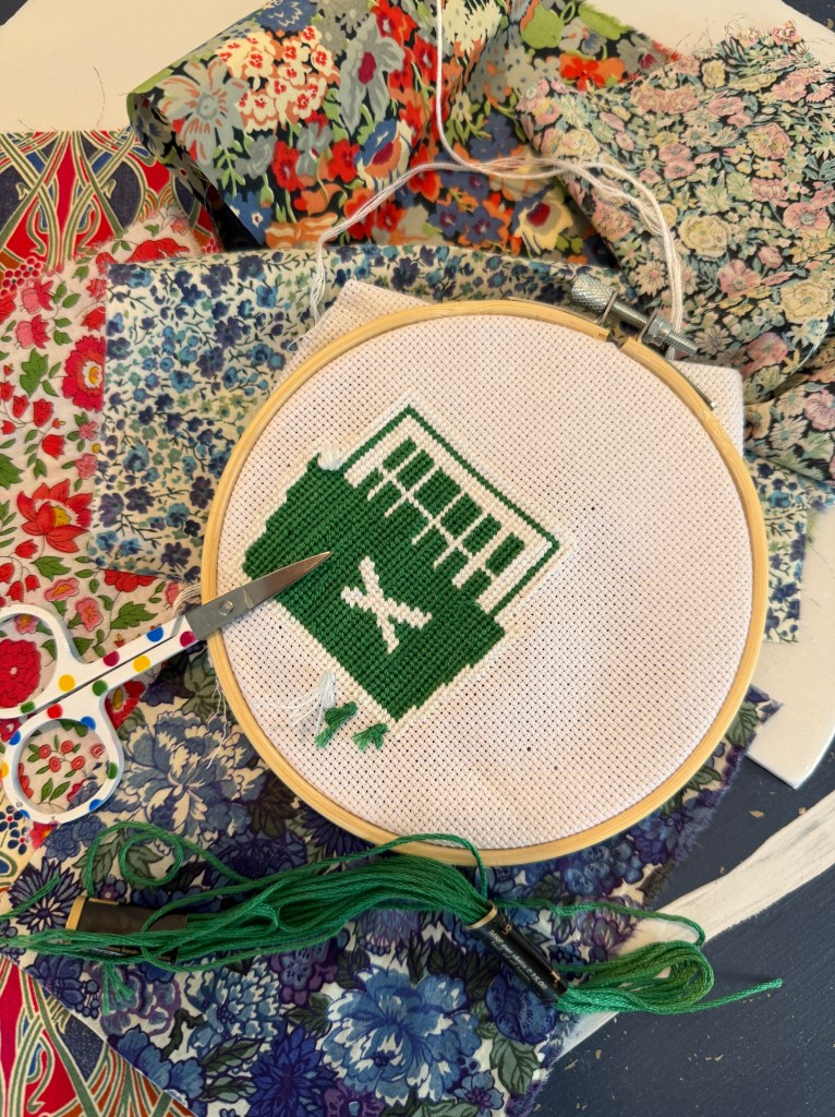 The best part? It was ridiculously simple. Only two colours (green and white), and I used leftover Anchor thread I already had lying around. So if you’ve ever wondered what to do with all those odd scraps of embroidery floss — here’s your answer.