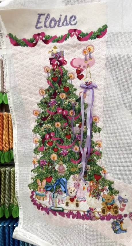 As my obsession with needlepoint stockings continues, I have realised that it’s SO important to make sure that you absolutely love the design before you start stitching it. Whatever you don’t absolutely love will eventually annoy you.